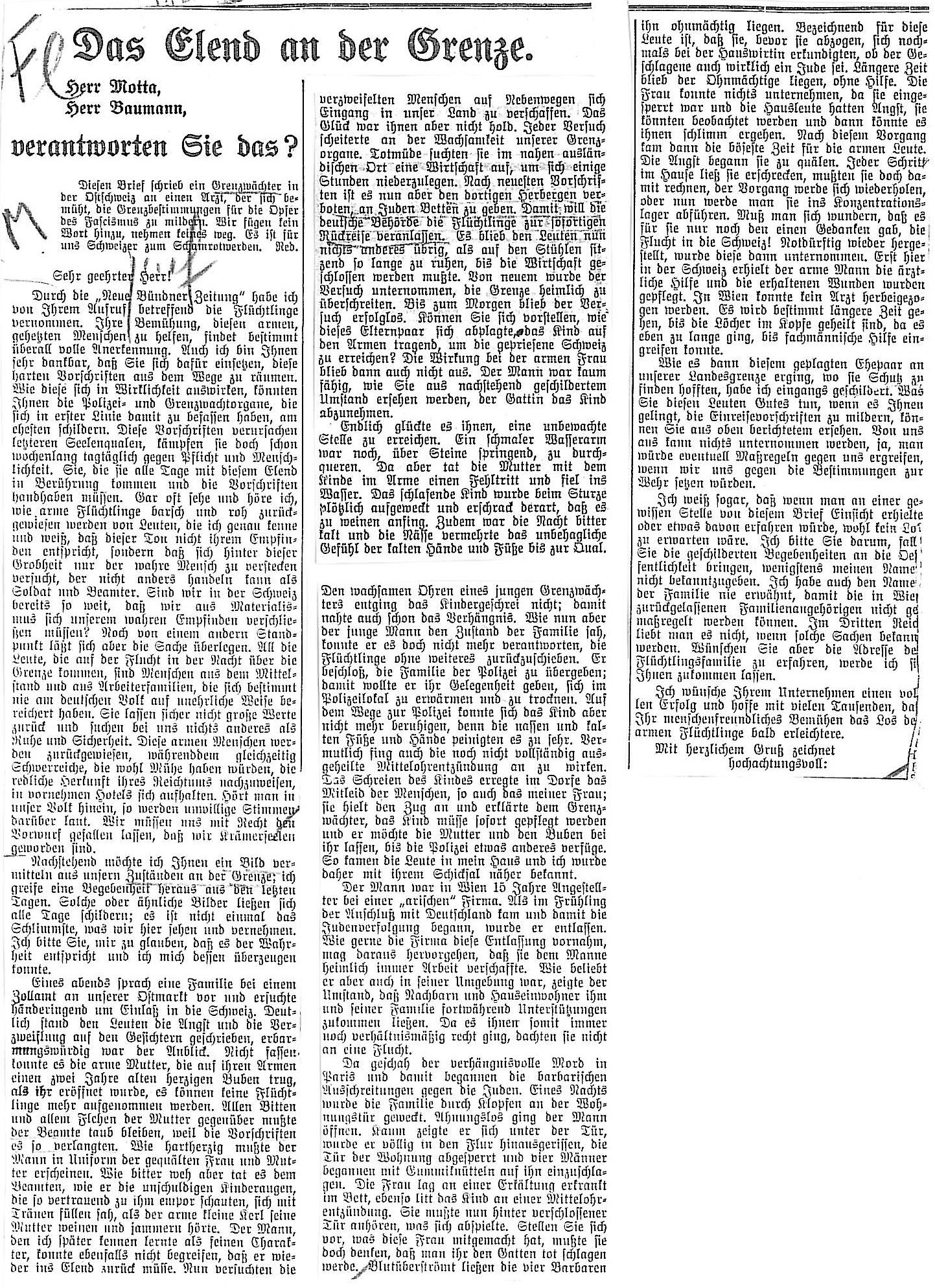 [1] Interview mit Jakob und Ida Kreutner, in: „Die Fluchthelfer von Diepoldsau“ (Hansjürg Zumstein, Schweizer Fernsehen SRF, 1997).