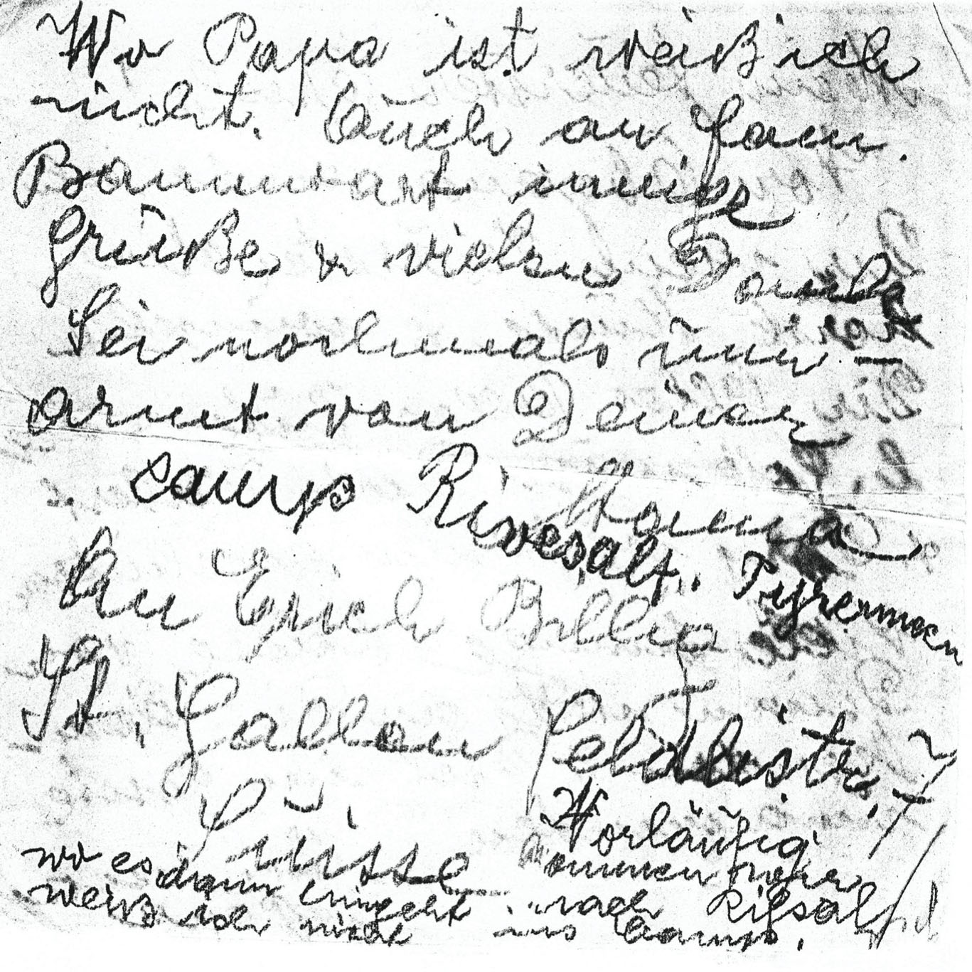 „Wo Papa ist weiss ich nicht. Auch an Fam(ilie) Bannwart viele Grüsse. Sei nochmals umarmt von Deiner Mama.