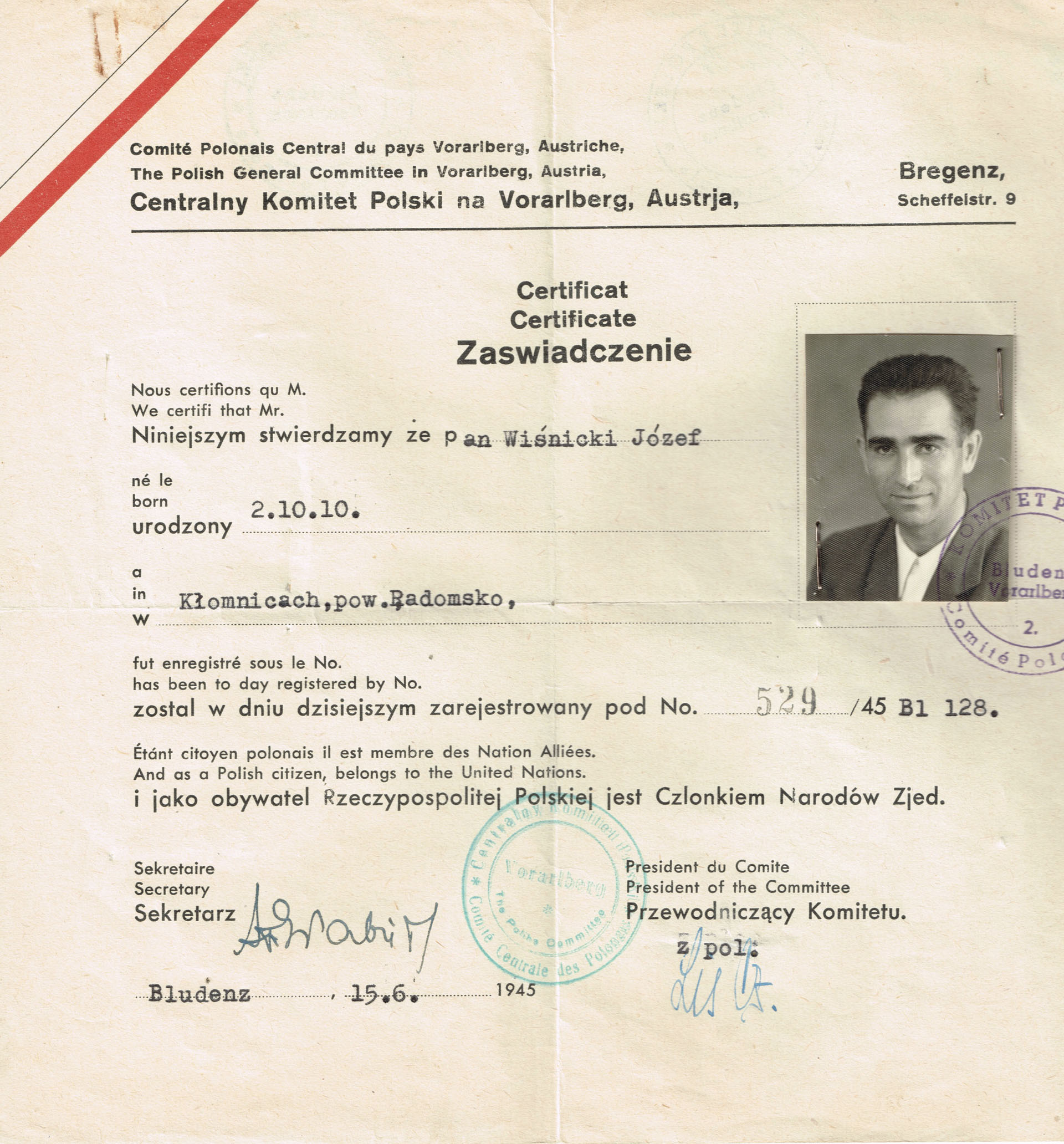 Wiśnicki überlebt auch dort die letzten Tage der NS-Herrschaft. Noch einmal kehrt er nach Bludenz zurück, wird jetzt tatsächlich für die befreiten polnischen Zwangs- und Fremdarbeiter verantwortlich und tritt der „Österreichischen demokratischen Widerstandsbewegung“ bei. Noch immer weiß niemand, dass er Jude ist.