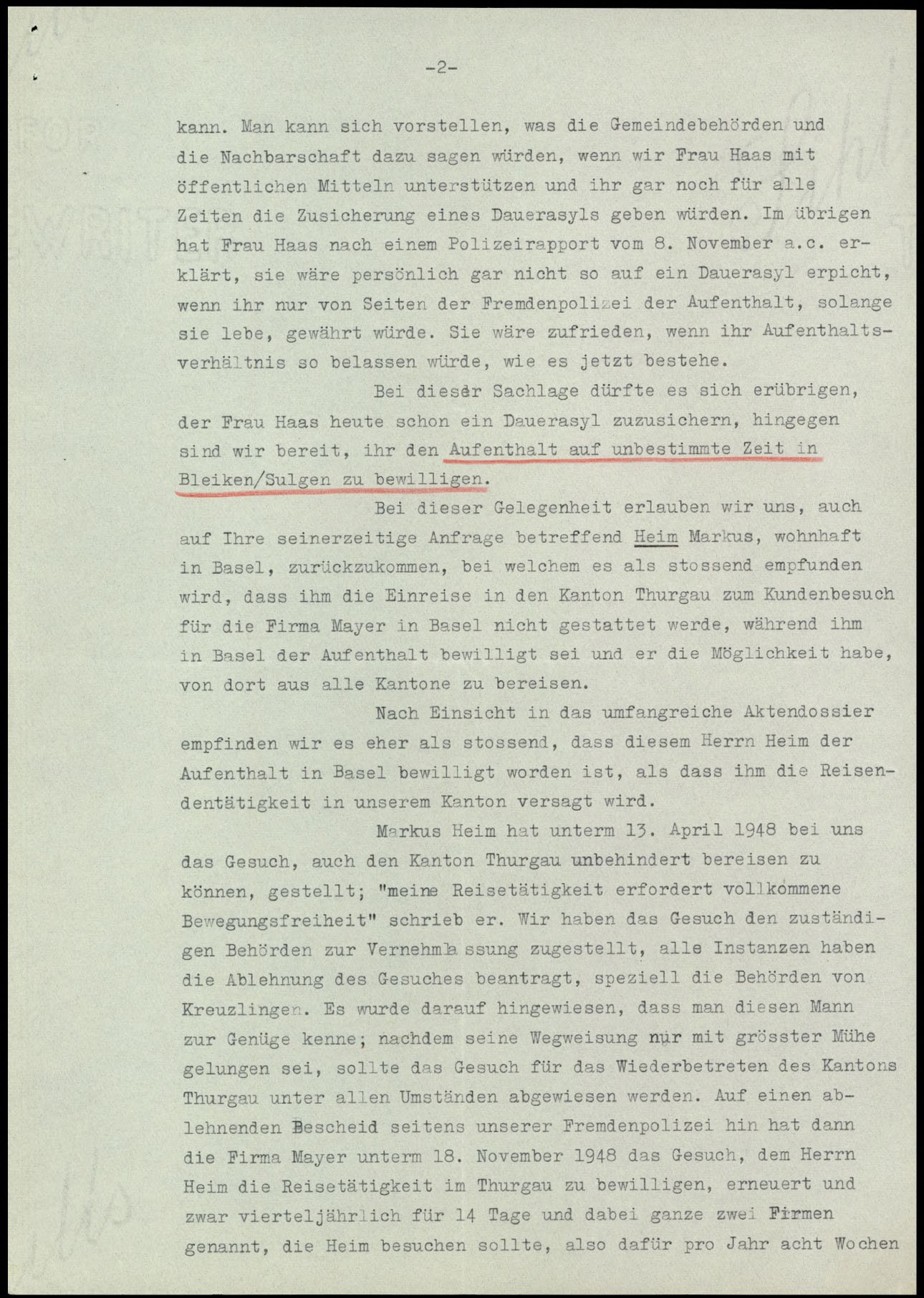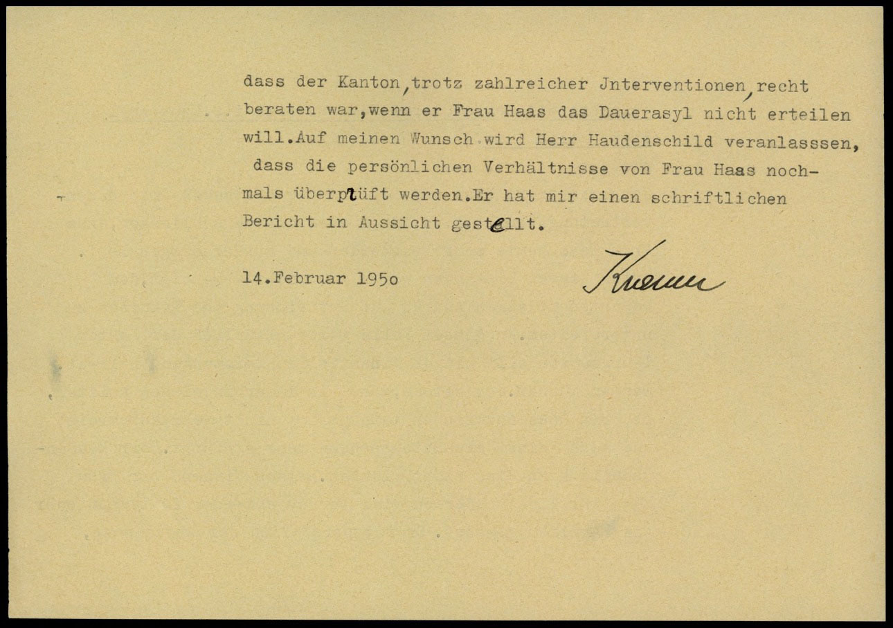 Papierkrieg um ein Dauerasyl. Emilie Haas und die Schweizer Behörden